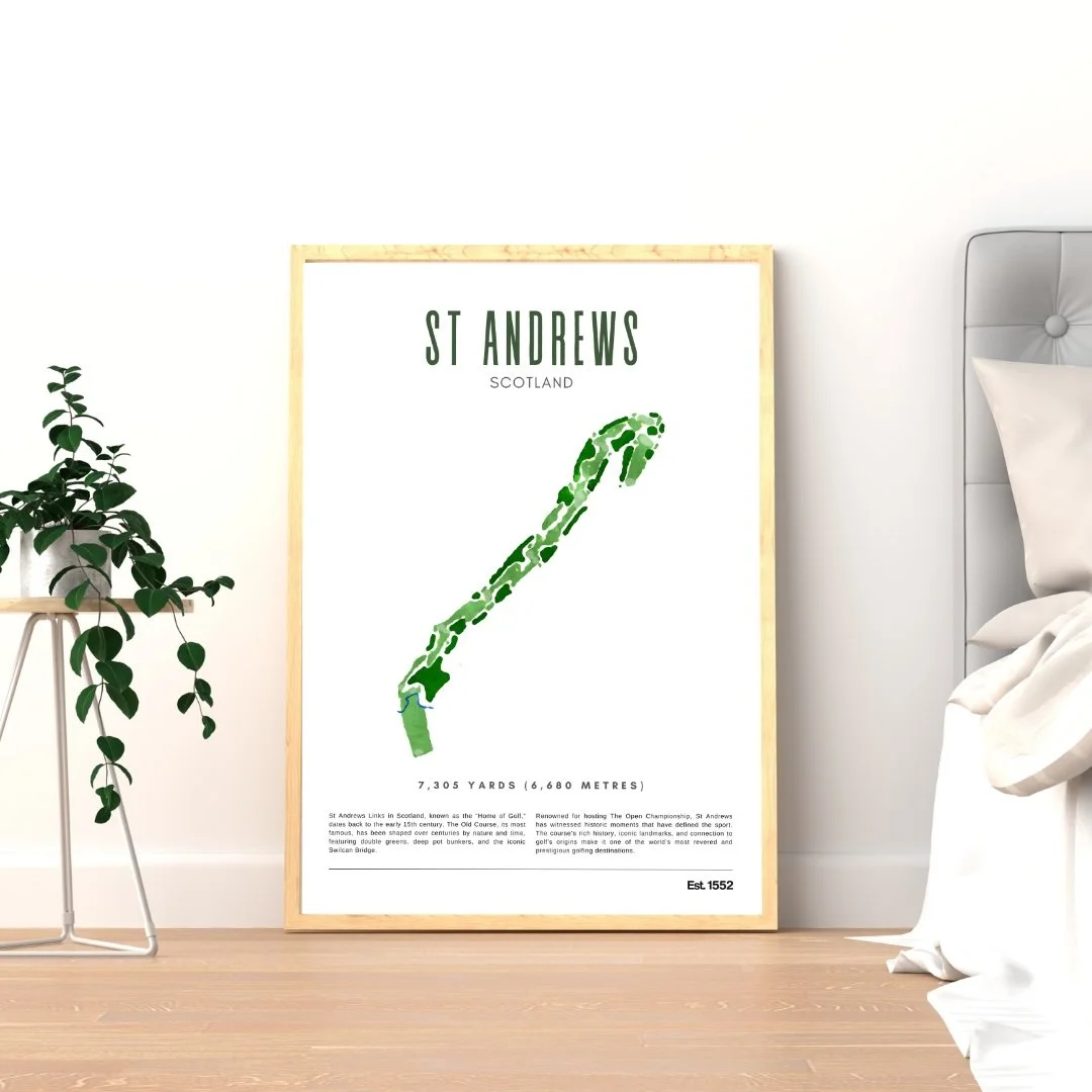 "Celebrate the game you love with our Course Prints Collection, a curated selection of beautifully designed prints showcasing some of the world’s most iconic and picturesque golf courses. Each piece captures the unique character, signature holes, and breathtaking landscapes that make these courses unforgettable. Perfect for golfers, collectors, or anyone looking to bring a touch of elegance and inspiration to their home or office, our prints are a tribute to the artistry and tradition of the game. Whether as a personal keepsake or a thoughtful gift, the Course Prints Collection allows you to relive your favorite moments on the fairway every day."